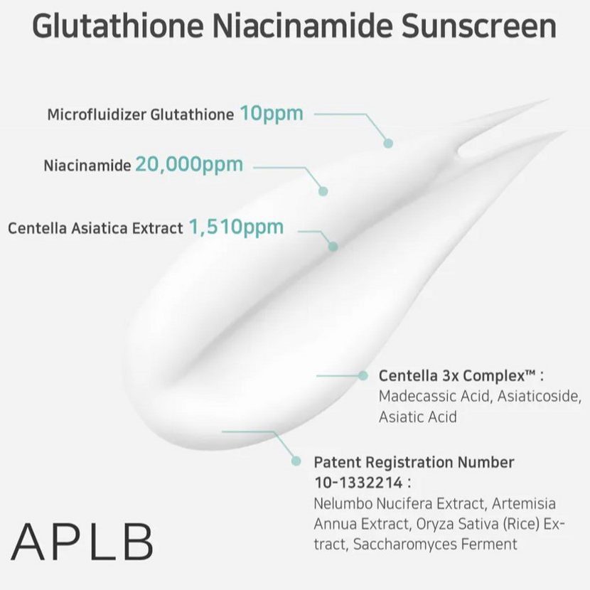 Ingredients: Water, Ethylhexyl Methoxycinnamate, Butylene Glycol, Niacinamide, Centella Asiatica Extract, Hyaluronic Acid, Glutathione, Beta-Glucan, and more.