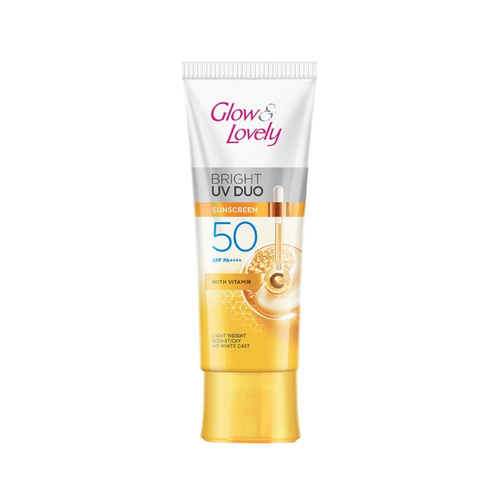 Glow & Lovely Bright Serum Sunscreen UV DUO SPF50 provides powerful sun protection while brightening your skin with Vitamin C and Niacinamide. Its lightweight, non-greasy formula makes it ideal for daily use, leaving your skin protected and radiant.