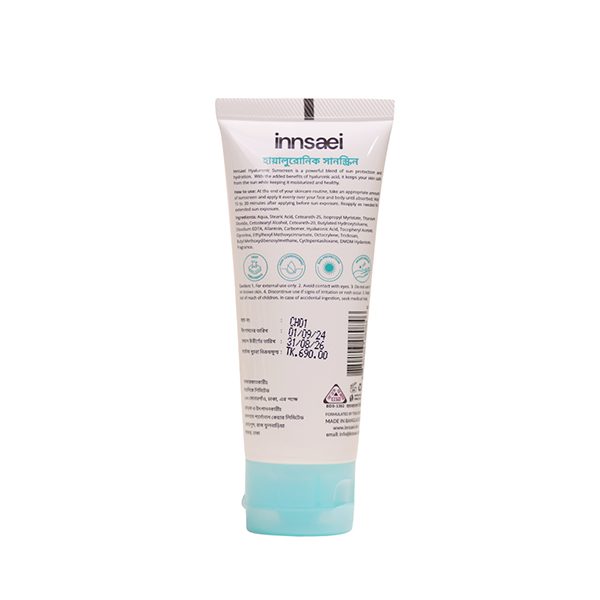 Innsaei Hyaluronic Sunscreen offers powerful sun protection combined with deep hydration. Infused with hyaluronic acid, it keeps your skin moisturized and healthy while shielding it from harmful UV rays. This sunscreen provides broad-spectrum protection, soothes and softens the skin, and offers antibacterial benefits.
