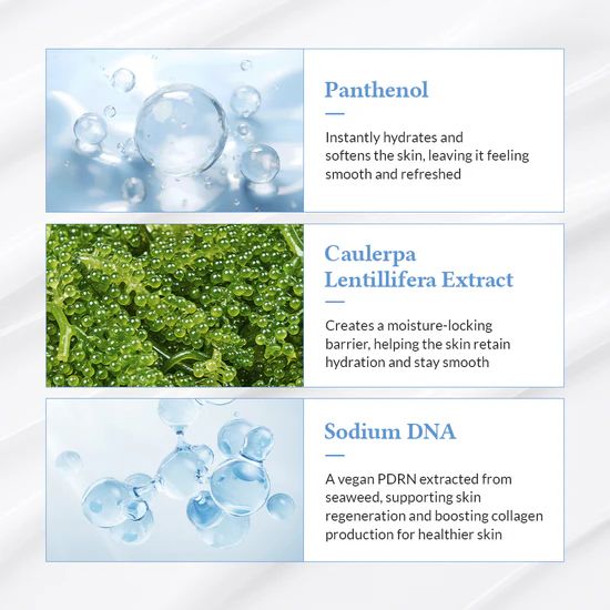 Enriched with Panthenol and Caulerpa Lentillifera (Sea Grape) Extract to deeply hydrate and smooth the skin